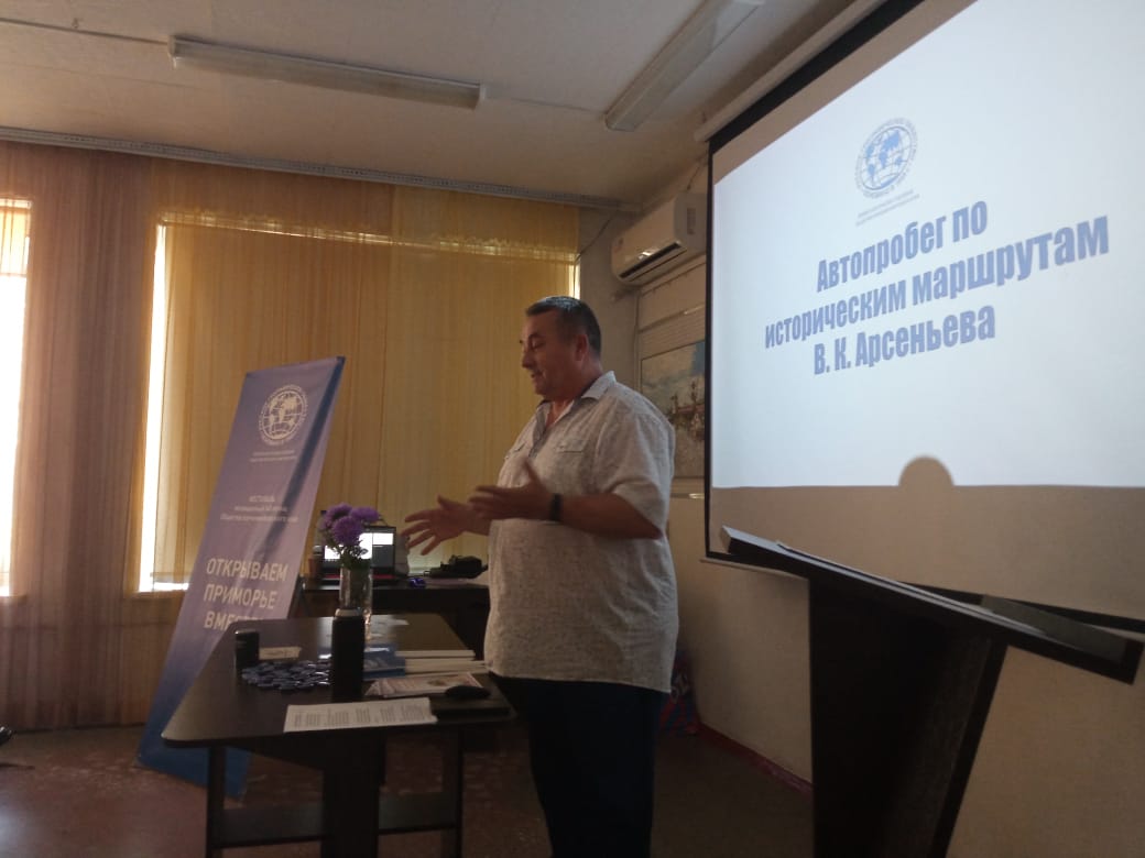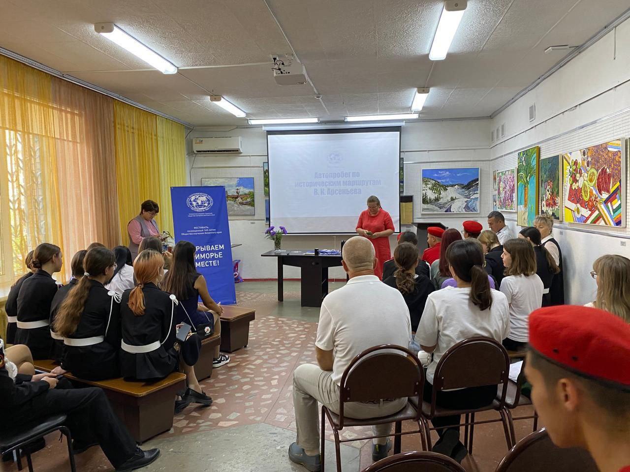 Присутствующие школьники и взрослые с интересом внимали рассказу об многодневной экспедиции – памятного автопробега «Открываем Приморье вместе» по северо-восточной части Приморья.
